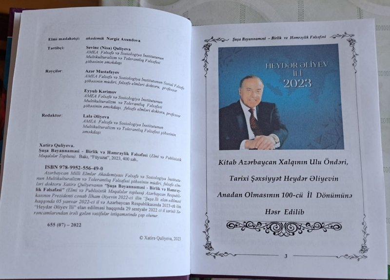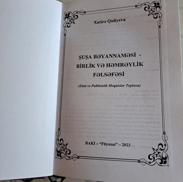 Xatirə Quliyeva.“Şuşa Bəyannaməsi - birlik və həmrəylik fəlsəfəsi”(Bakı.Füyüzat.2023)