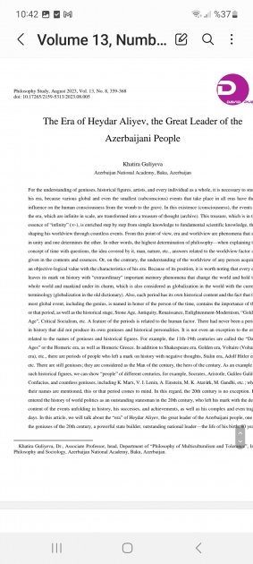 Xatirə Qulieva. “Azərbaycan xalqının Ulu Öndəri Heydər Əliyevin dövrü” (ABŞ.Fəlsəfi tədqiqatlar.2023)